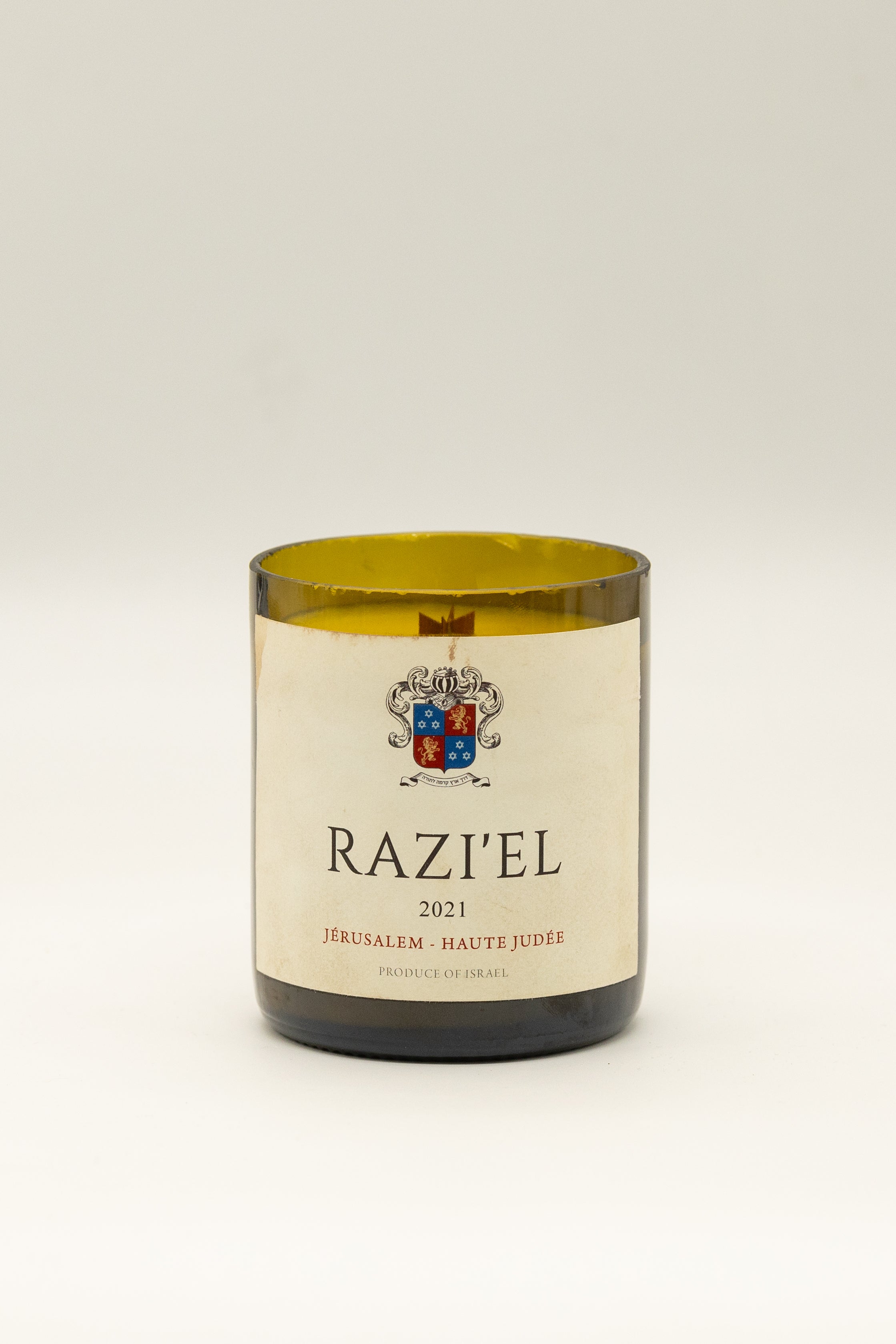 Go to the shopנר בעבודת יד יוקרתי המיוצר בתוך בקבוק יין ממוחזר של Razi’el 2021 מאזור הרי יהודה. העיצוב האלגנטי עם סמל האצולה יוצר מראה קלאסי ומרשים, המתאים לכל חלל שרוצים להאיר באווירה חמימה ומזמינה.
